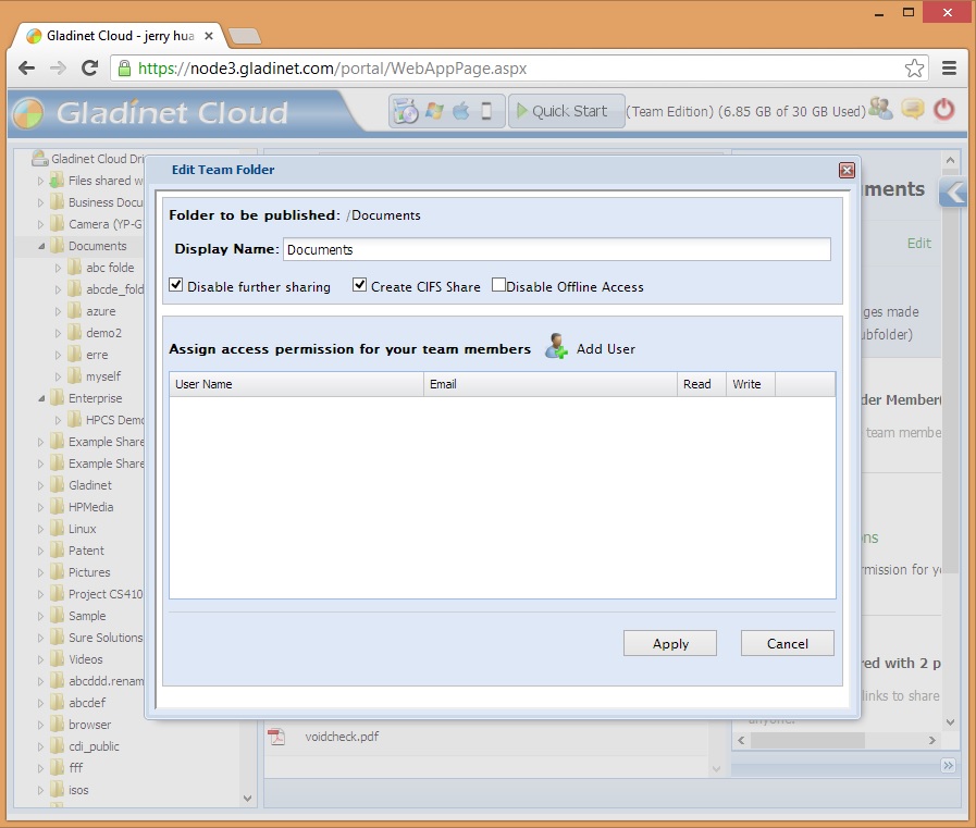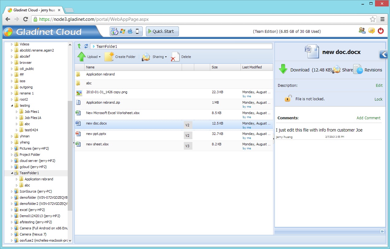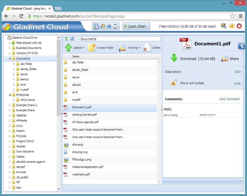 Gladinet Cloud provides online collaboration related functionalities, such as team