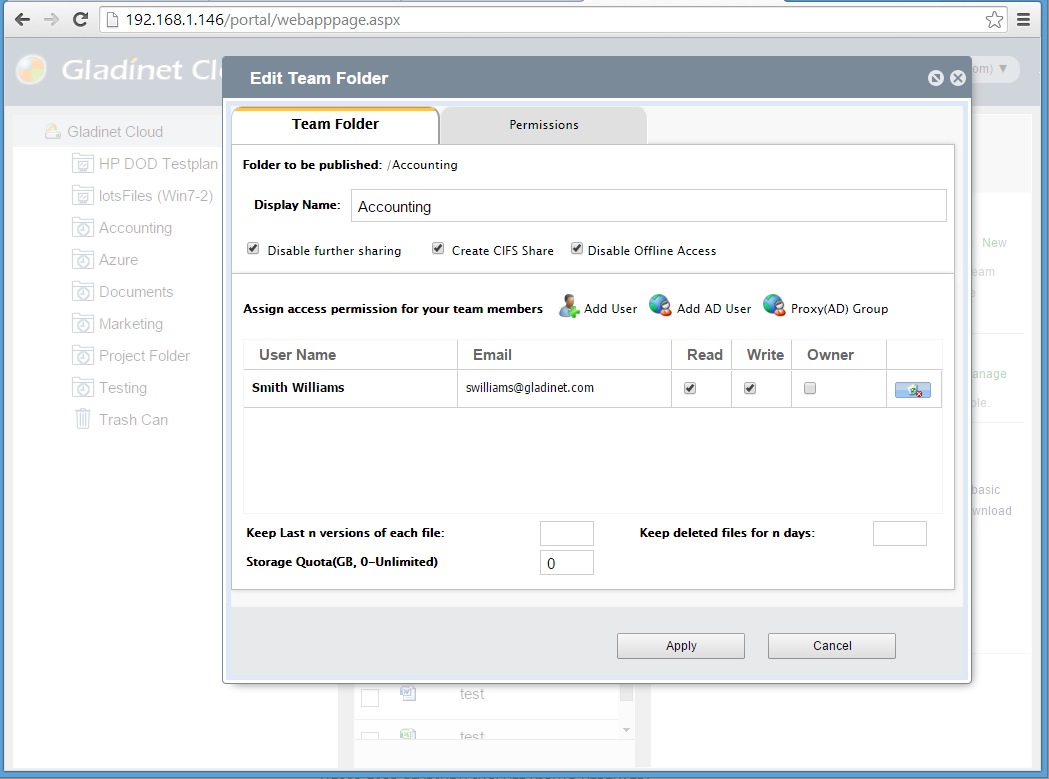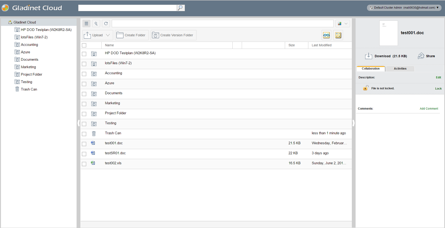 Gladinet Cloud provides online collaboration related functionalities, such as team