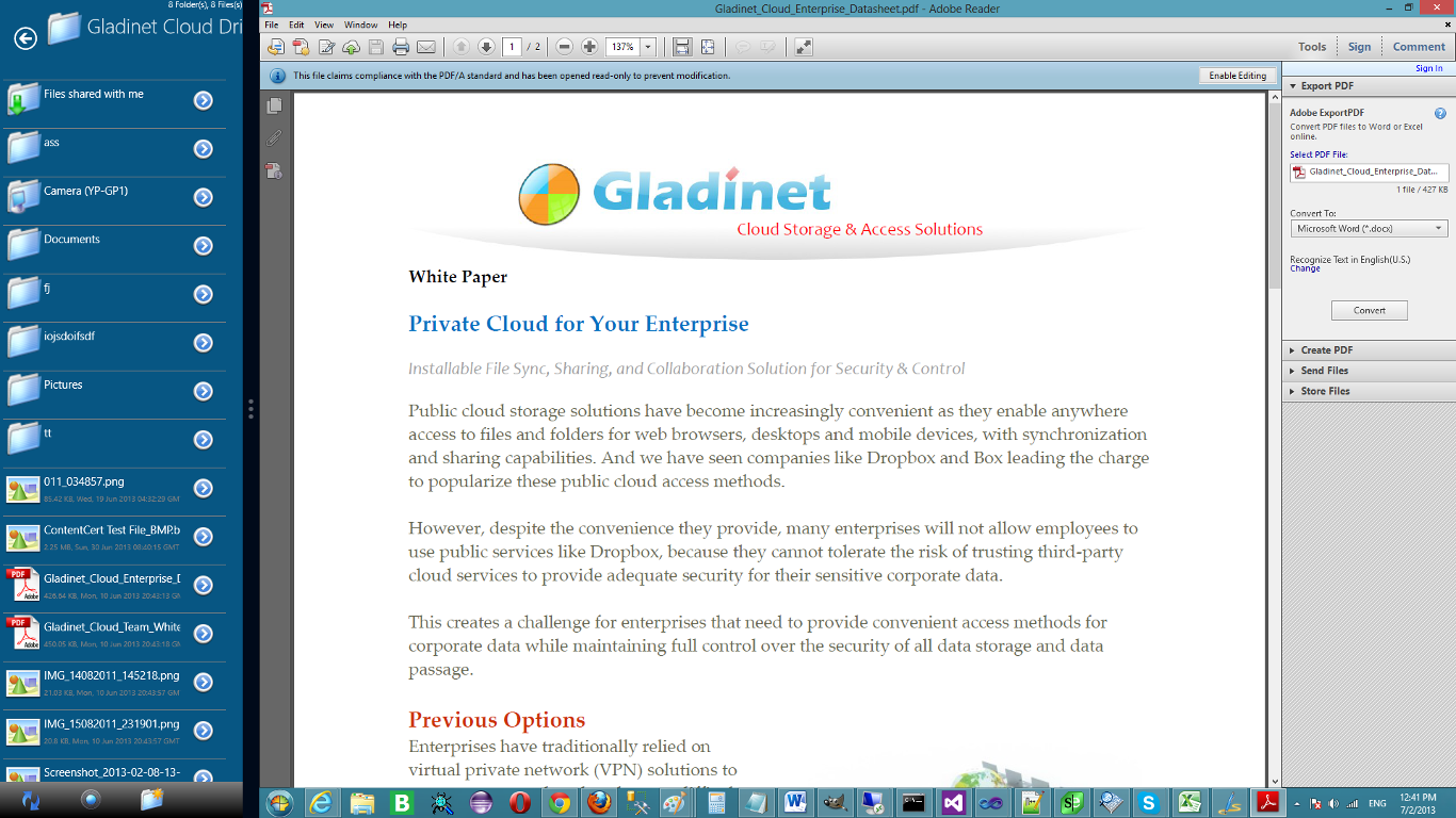 Gladinet Cloud provides mobile applications on Windows 8 Pro, Windows RT and other